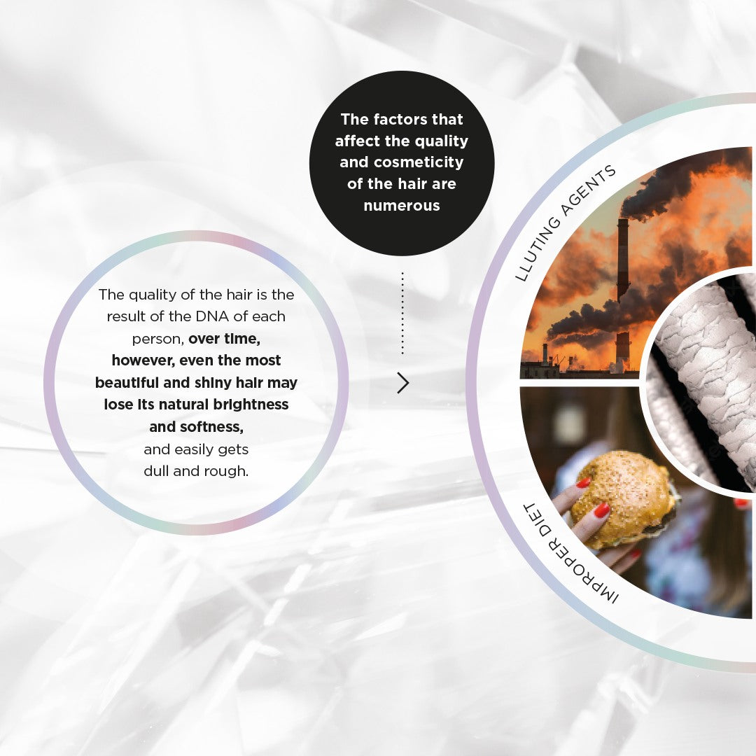 Its remarkable formula is based on FRV COMPLEX: a powerful liquid complex of active ingredients born from the synergy between phytokeratin and Damask rose and violet extracts, which have sealing and antioxidant effects on the hair.
