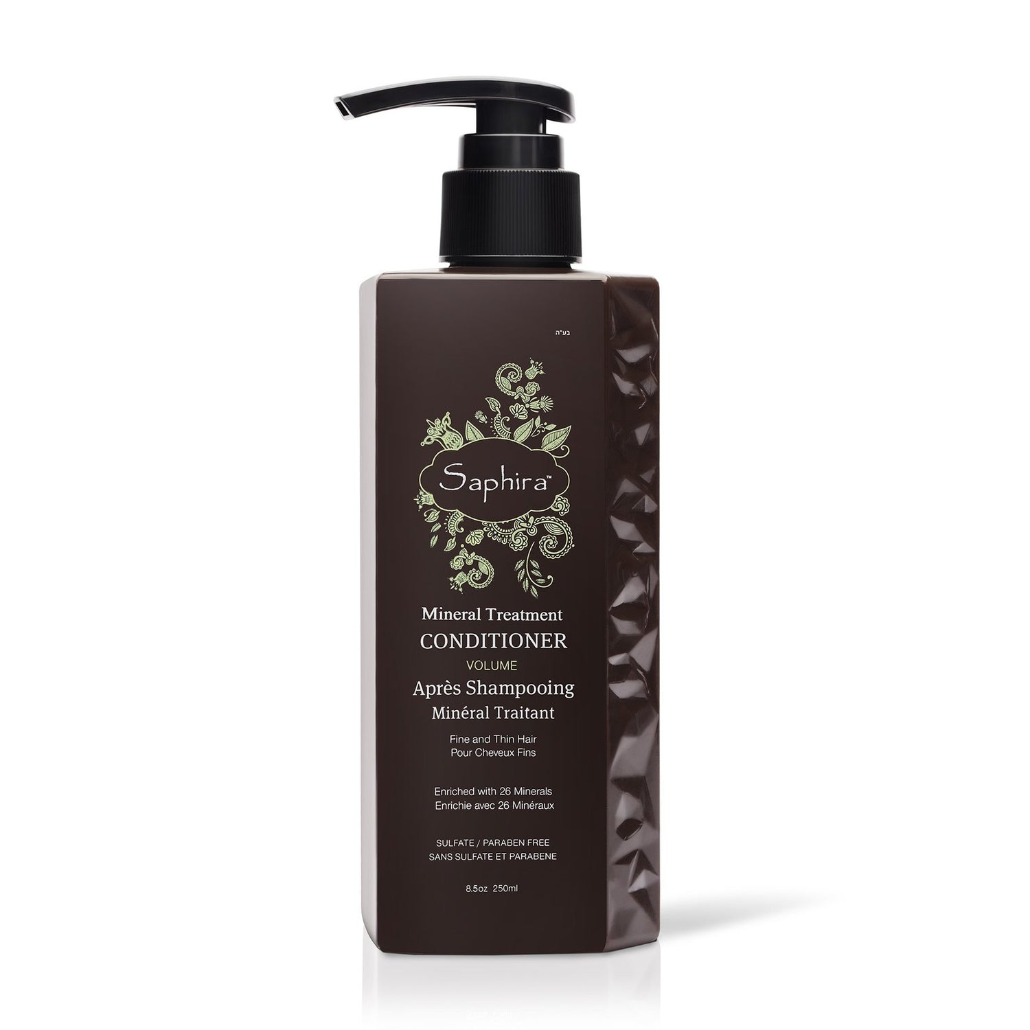 Saphira Mineral Treatment Conditioner enriched with 26 active Dead Sea minerals, is a superior salon professional luxury conditioner exclusively formulated to build and secure volume, texture and body to fine, thin and chemically treated hair. The Mineral Treatment Conditioner is sulfate-free and paraben-free.
